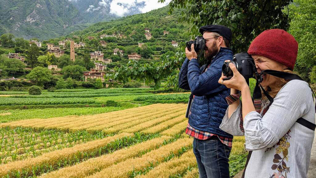 We get tons of technical photography practice, too: shooting models in exotic places, being tourists on horseback in Tagong, catching landscapes from mountain passes and spying out the hustle and bustle of life in a fresh market. Some smells were better than others, but it is all visually amazing.